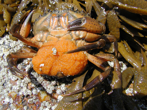 The crab, I think, is a female. The knobs on her back are eggs! I think they are usually on the underside but who’s to say that this crab isn’t on its back? https://lh3.ggpht.com/Al4ExBiwIY159-n1unmn4_oO7ntoo7WxTTQvkmRfEXjTxHPwTvY_nTnfrP0v2GvijdweNeo4Y6SWigawuGc=s600